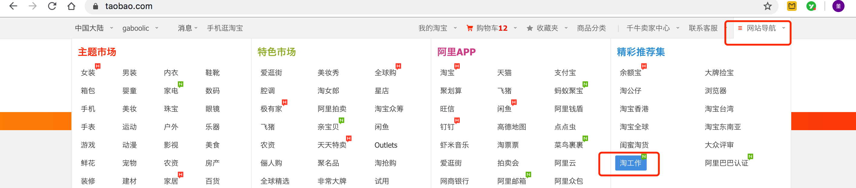 淘宝有很多兼职客服的工作,可能有的朋友不知道入口在哪,我免费告诉大家,就在淘宝网首页-网站导航-淘工作,如下: