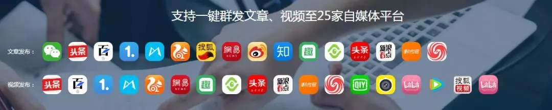 支持发布的自媒体平台多达25个,覆盖全网主流自媒体发布平台,包括搜狐自媒体,今日头条自媒体,一点资讯自媒体,网易自媒体,企鹅自媒体,腾讯自媒体,uc自媒体等。