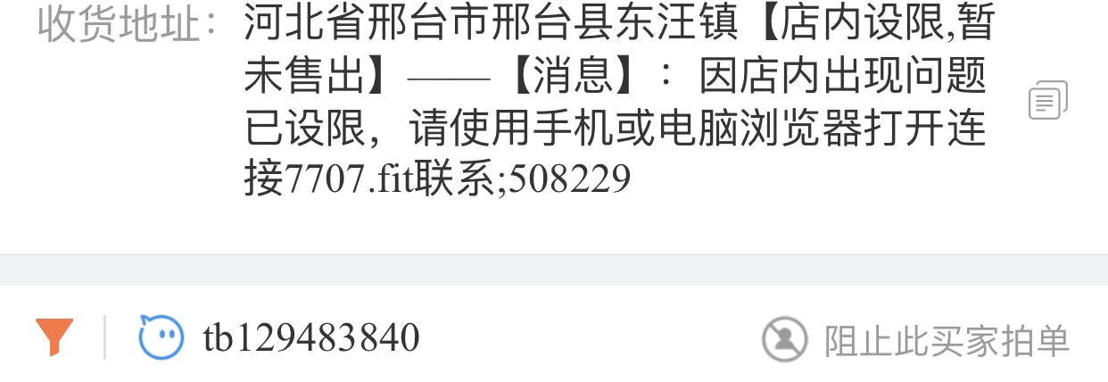 我刚开淘宝店的时候,连续很多天连个访客都没有。后来好不容易来了一个访客,他还创建了订单,但是没支付。我就点开这个订单,看到他在地址栏里面写什么“店内设限,暂未售出”,让我打开xx网站什么的。这个网站现在已经不能打开了,我当时还打开看了看,做的跟真的一样,让输入支付宝账号密码。估计输入了就被盗号了,这点小把戏还骗不到我。
