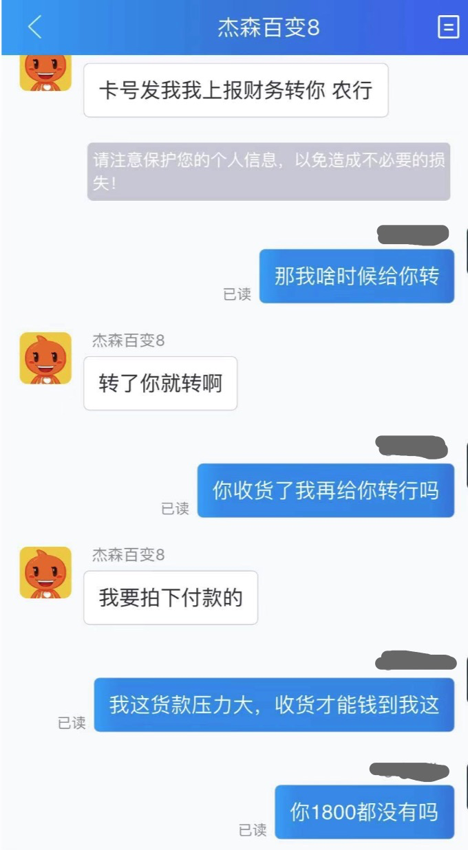 后来我淘宝店做的稍微大一点了,每天都能出单,又遇到一个声称要批发的人。我那件商品是弹弓,那个人说想买40个弹弓。我说你直接下单就完了,我给你便宜点。结果他说是公司要买,说他用公司的卡给我转2800,再给他转到他私人的卡转回去,走个过场,然后他再来我这下单。说白了他就是想吃点回扣,但我觉得这流程不对。正常流程不应该是在我这高价买了东西之后,收货以后再让我私下给他吗?我虽然不知道他是怎样骗钱的,但我对骗术基本已经免疫了。然后我又去搜索了一番,找到一篇文章,这个骗局似乎是利用延迟转账的机制,给你转账的时候你会收到一条银行短信,但钱并没有到账,这时候你以为钱到账了,再转给骗子,骗子撤销转账,相当于你自己直接赚了一笔钱给骗子!