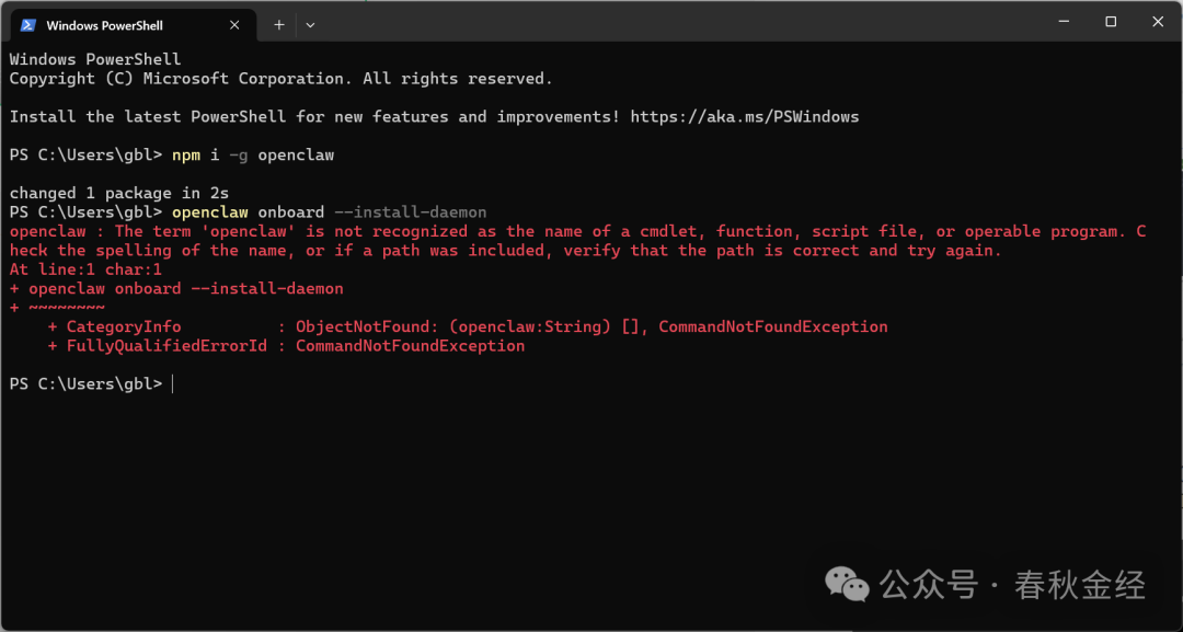 也许你遇到输入openclaw 命令会报错(没报错的后面不用看了)